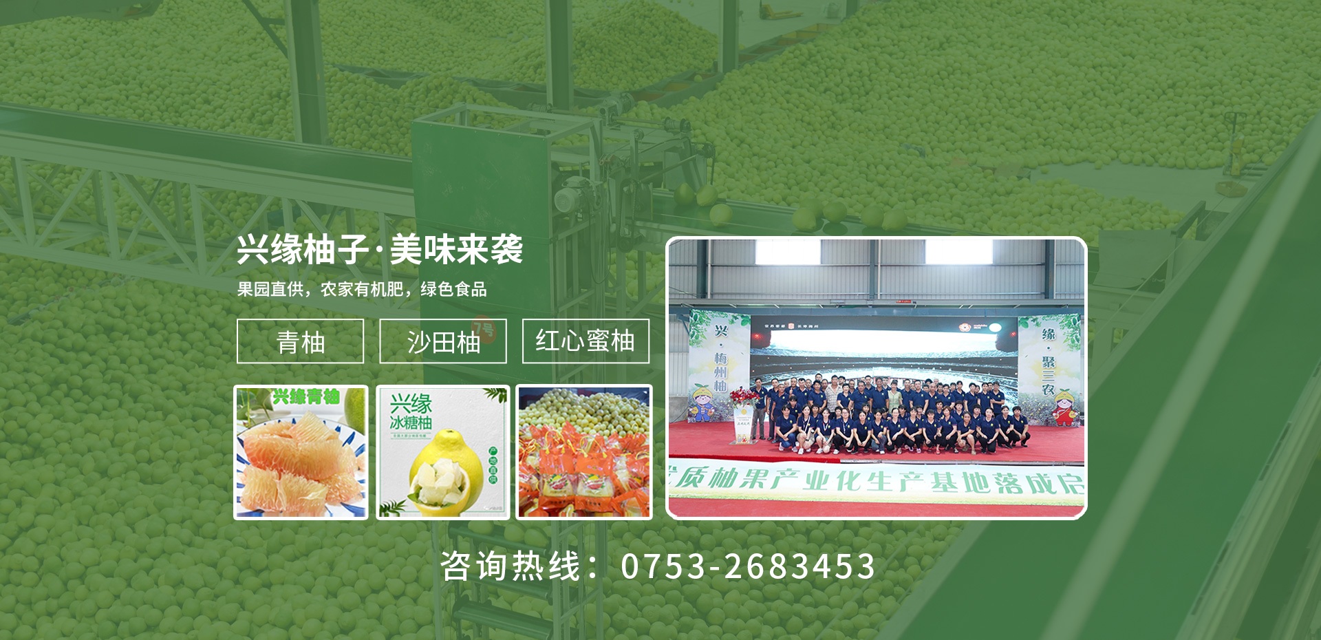 公司拥有标准金柚园基地2100亩,泰国青柚700亩,核心果农种植基地6500亩,加工厂区面积约2万平方米,有10条全自动柚果分级包装系统,日均加工柚果300多吨。